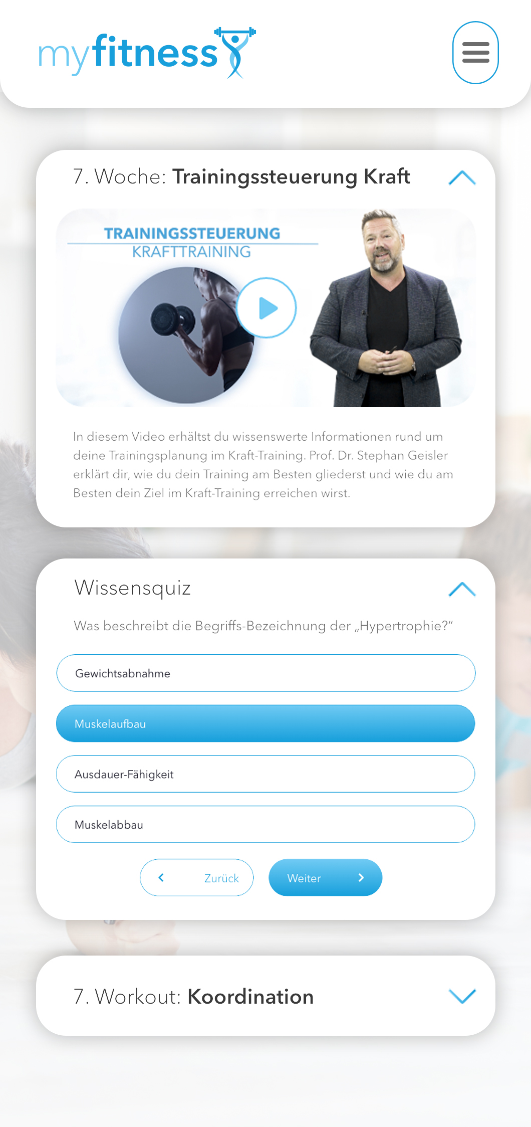 Unter "Dein Fortschritt" kannst du deine wöchentlichen Fortschritte festhalten und einsehen.